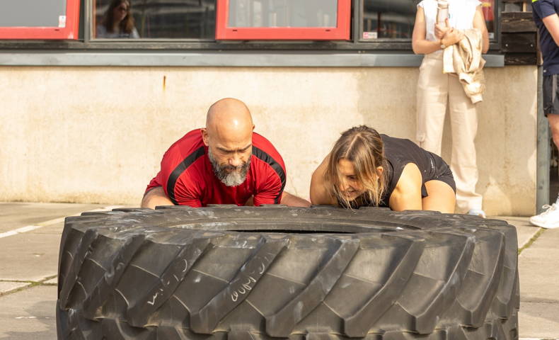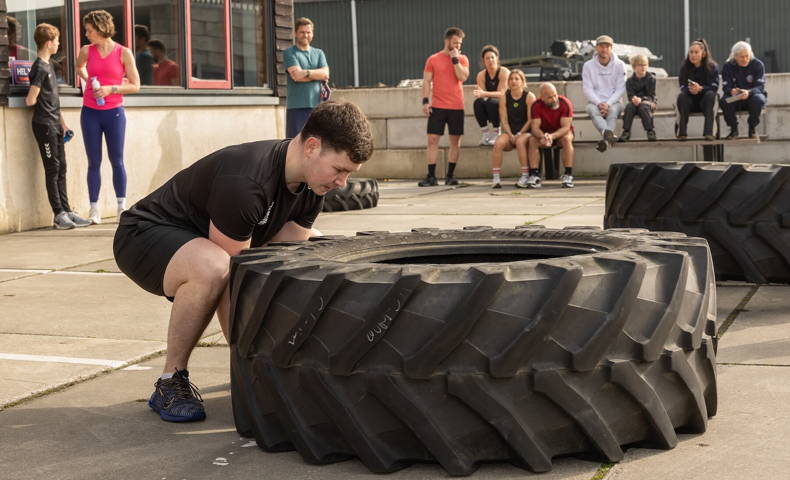 Gedurende de dag werden vier WOD’s afgewerkt in verschillende heats. De workouts bestonden uit een mix van kracht, conditie en doorzettingsvermogen met oefeningen zoals burpees, dead hang, deadlifts, assault bike, spring rope, cleans, squats, tractorband lifts en een run van 1 kilometer. Binnen én buiten werd alles gegeven om zo goed mogelijk te presteren.